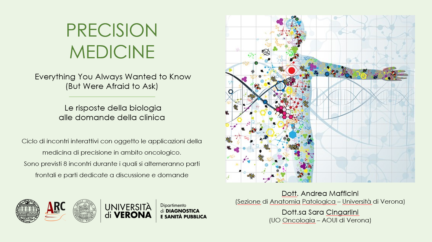 La sezione di Biomedicina di Innovazione, in collaborazione con l’Anatomia Patologica e l'Oncologia dell'Università di Verona, organizza un ciclo di incontri sul tema della medicina di precisione in campo oncologico.