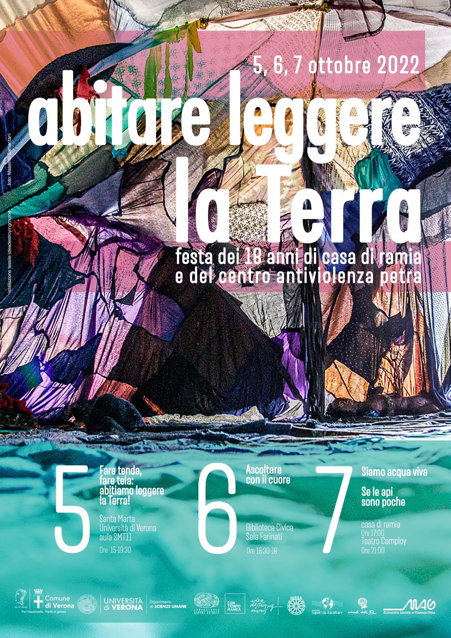 L'evento, inserito tra le iniziative promosse da Contemporanea, vedrà l'istallazione de “La tenda verde”, del gruppo artistico di creazione comunitaria ideadestroyingmuros, La tenda è stata creata durante il laboratorio “Pratiche di cura e culture della differenza nel lavoro educativo e di cura” promosso dal Laboratorio Saperi Situati dell'Università di Verona con Casa di Ramía e l'associazione Nissa. Ad aprire l'evento i saluti di Olivia Guaraldo, delegata al Public engagement dell’università di Verona, Rosanna Cima, responsabile del Laboratorio Saperi Situati, Barbara Bissoli, vicesindaca e assessora alla parità di genere e Jacopo Buffolo, assessore alle politiche giovanili e di partecipazione, alle pari opportunità del Comune di Verona. Seguiranno l’invocazione a Saraswathi, del gruppo dello Sri Lanka Thapoda, monologhi e poesie “Giro libera di parola”, lo spettacolo di danza “Le rage” con Marie Agnès Gomis, musicato da Marco Pasetto, un aperitivo e un concerto della rapper Adriana